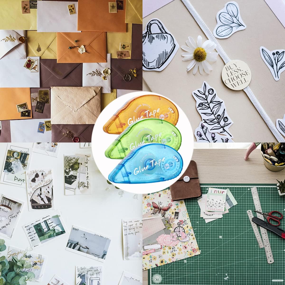 These double sided tape rollers are perfect for scrapbooking, photo albums, card making, collage art, gift wrapping, envelope sealing, school projects, office presentations, mounting recipes, craft projects, decorative arts, and mixed media applications. Suitable for both beginners and professional crafters.