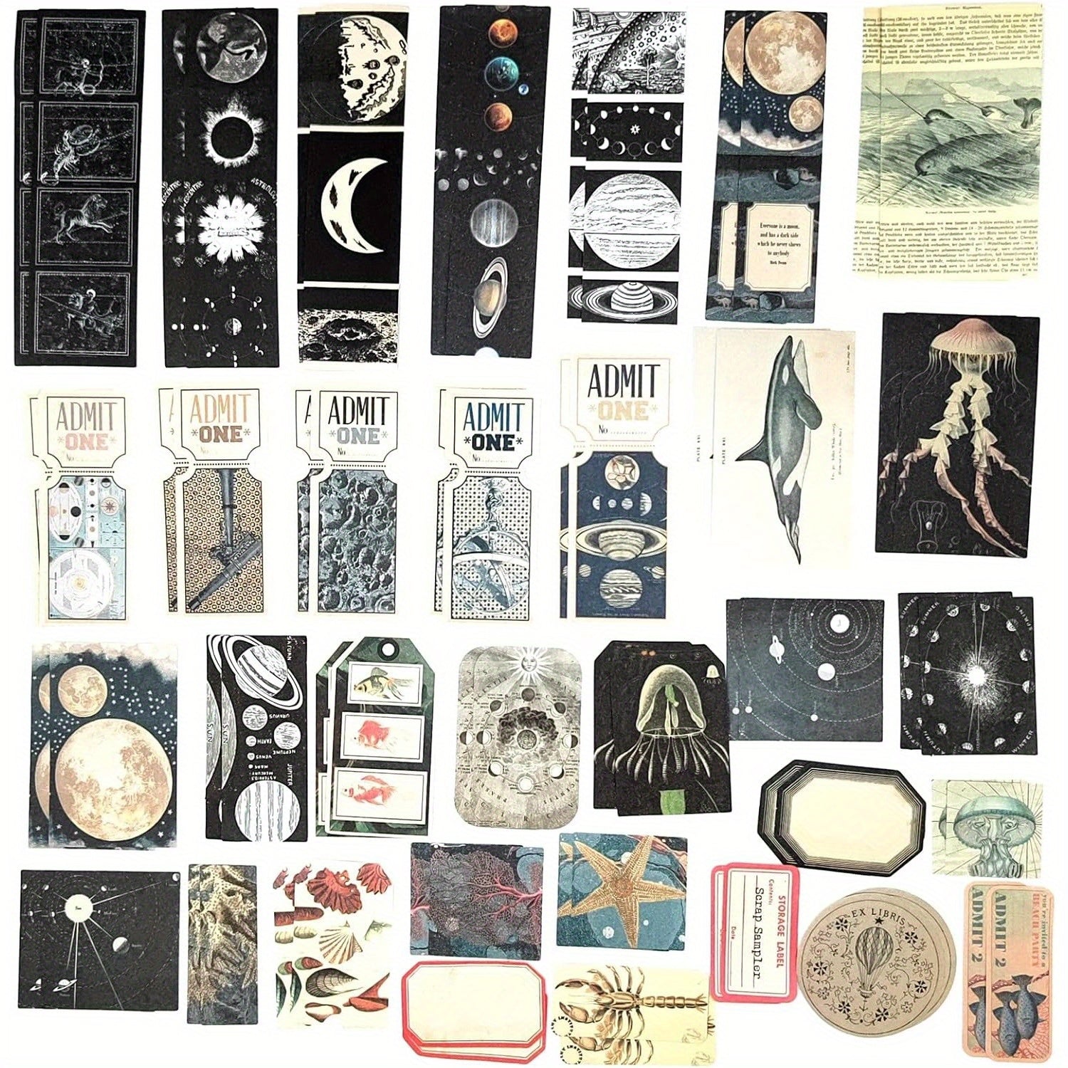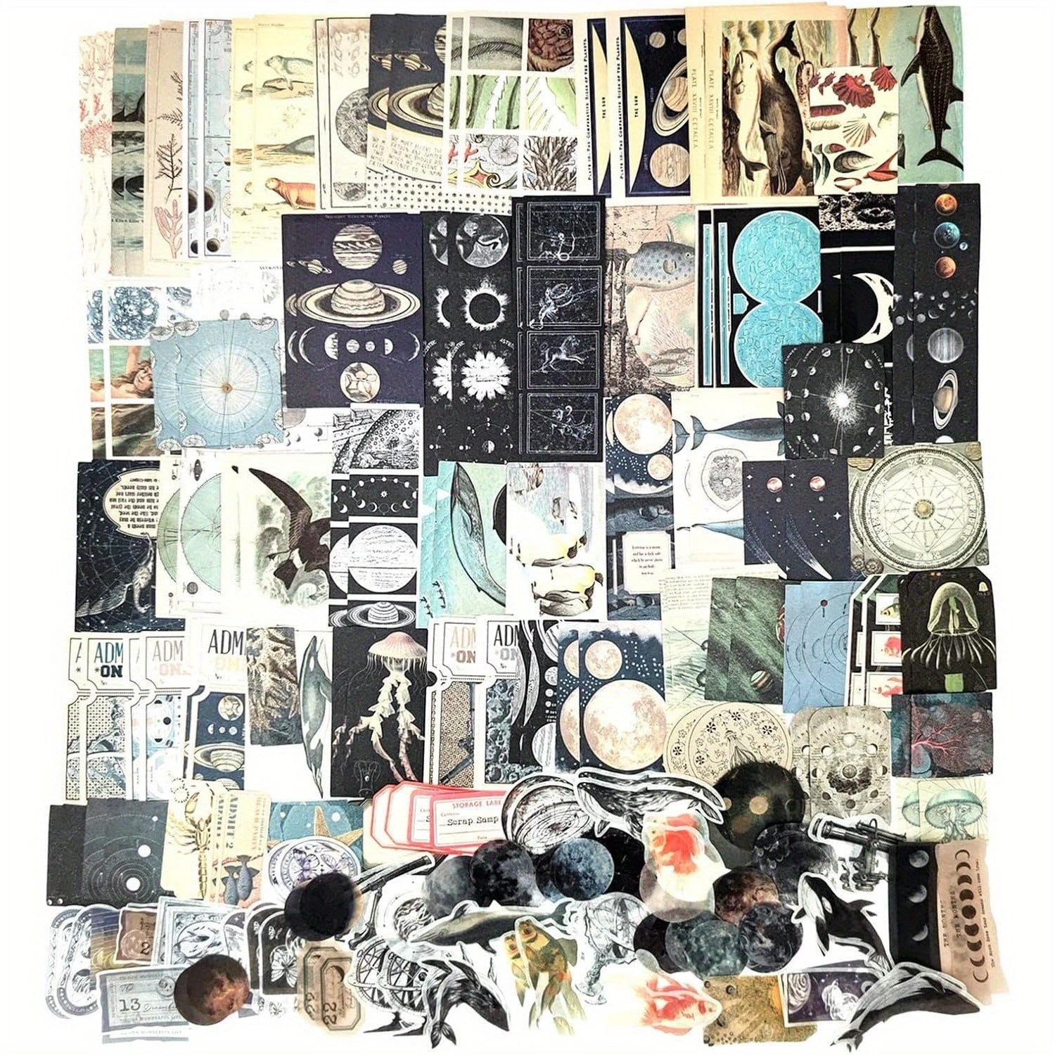 200-Piece Space & Under The Sea Scrapbooking Kit - Cosmic Ocean Ephemera Collection