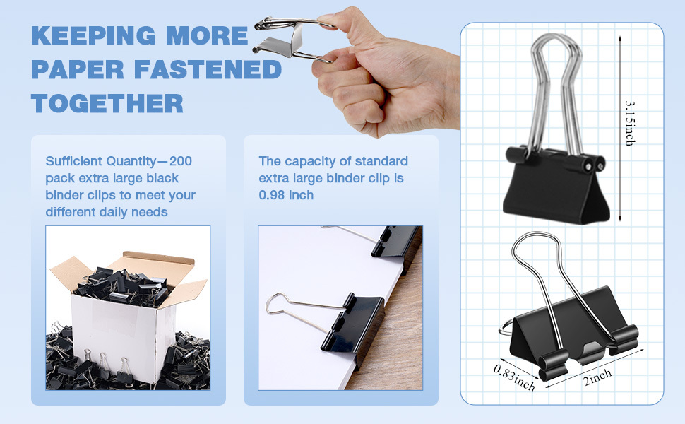 - Bulk Quantity: Get 200 pieces of extra large binder clips in one value pack - perfect for sharing with colleagues, students, or family members