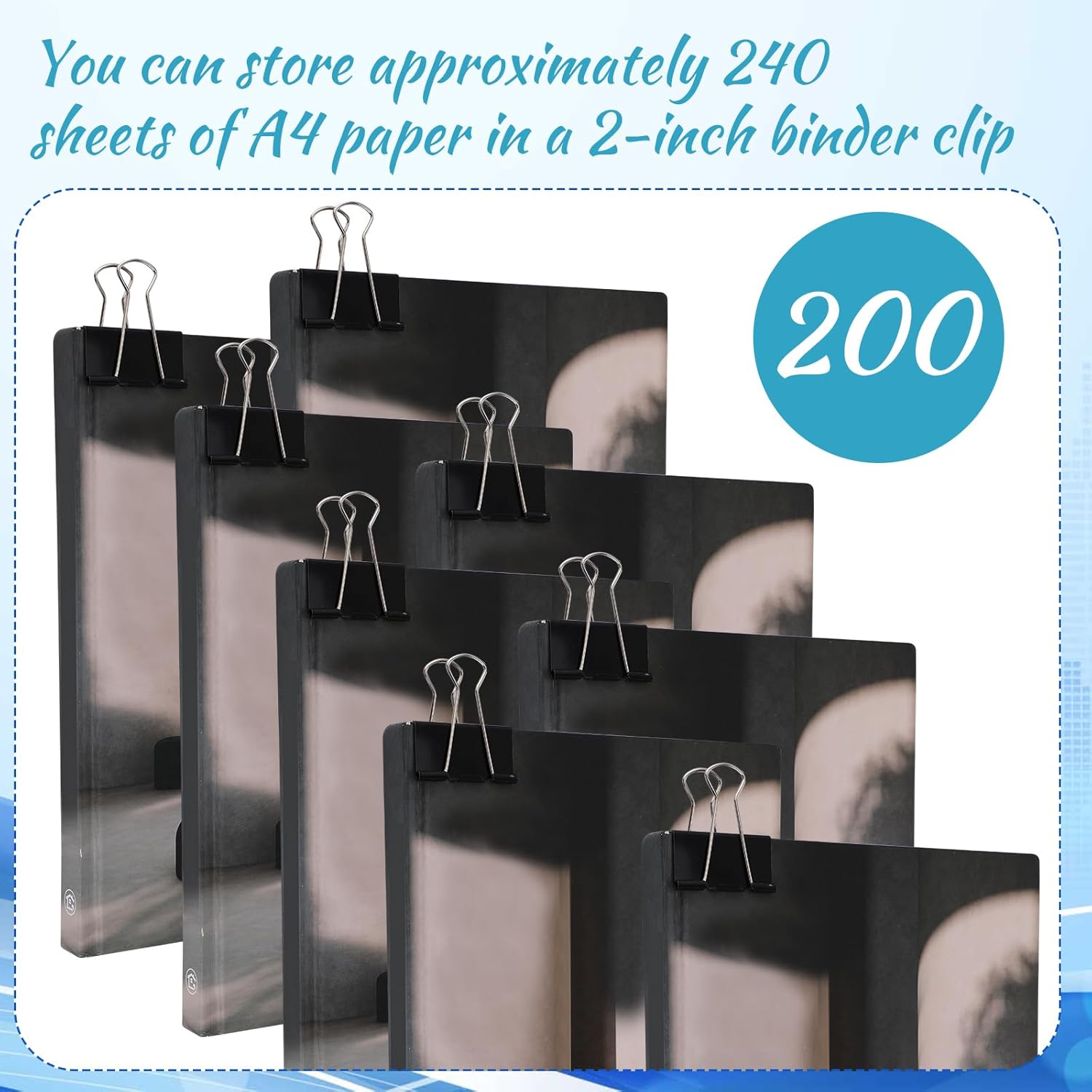 200pcs Extra Large 2 Inch Binder Clips Bulk - Jumbo Metal Black Paper Clamps for Office Supplies, Teachers, Students, Business