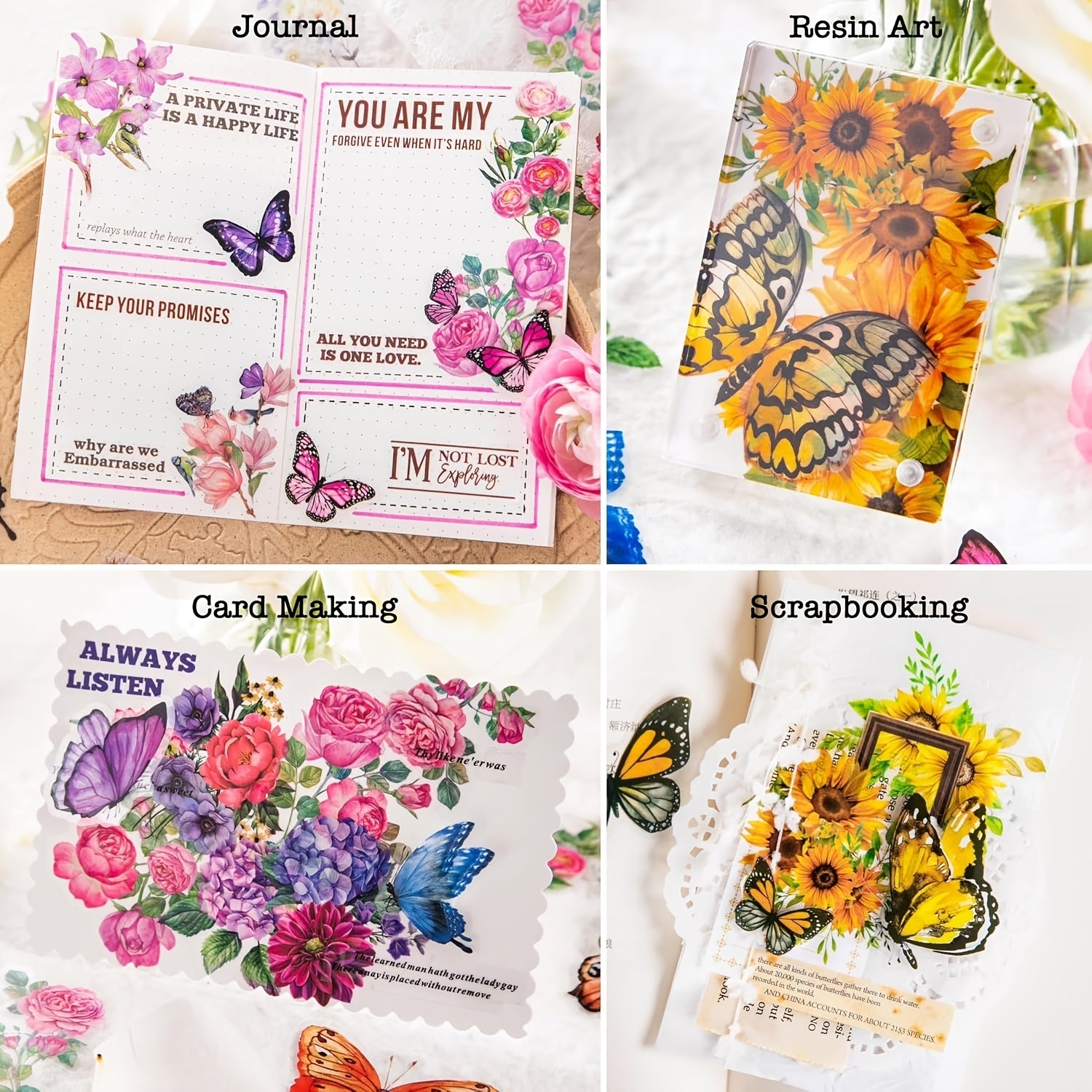 These waterproof butterfly and flower stickers offer superior quality with their durable PET construction that maintains clarity and adhesion over time. Unlike paper stickers, our transparent decals create a seamless layered look, allowing underlying patterns and textures to show through. The matte finish provides a premium appearance while the waterproof feature ensures your creations last. Perfect for crafters of all levels, this extensive collection provides endless possibilities for adding vintage charm and natural beauty to your projects.