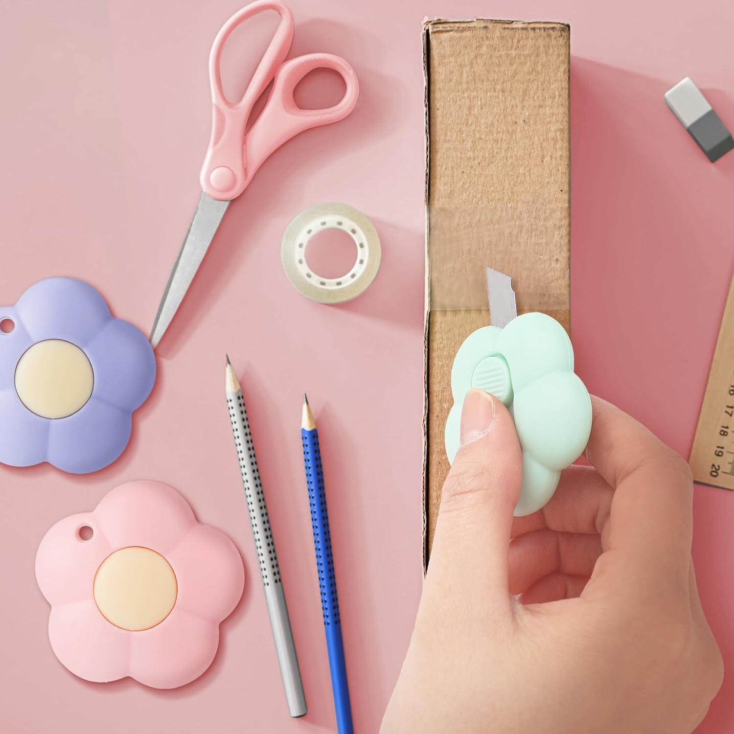 Upgrade your tool collection with these cute and practical mini retractable box cutters. Combining functionality with a stylish design, they are essential for efficient cutting tasks in any setting. Order now and enjoy the convenience of having a reliable cutter always on hand!