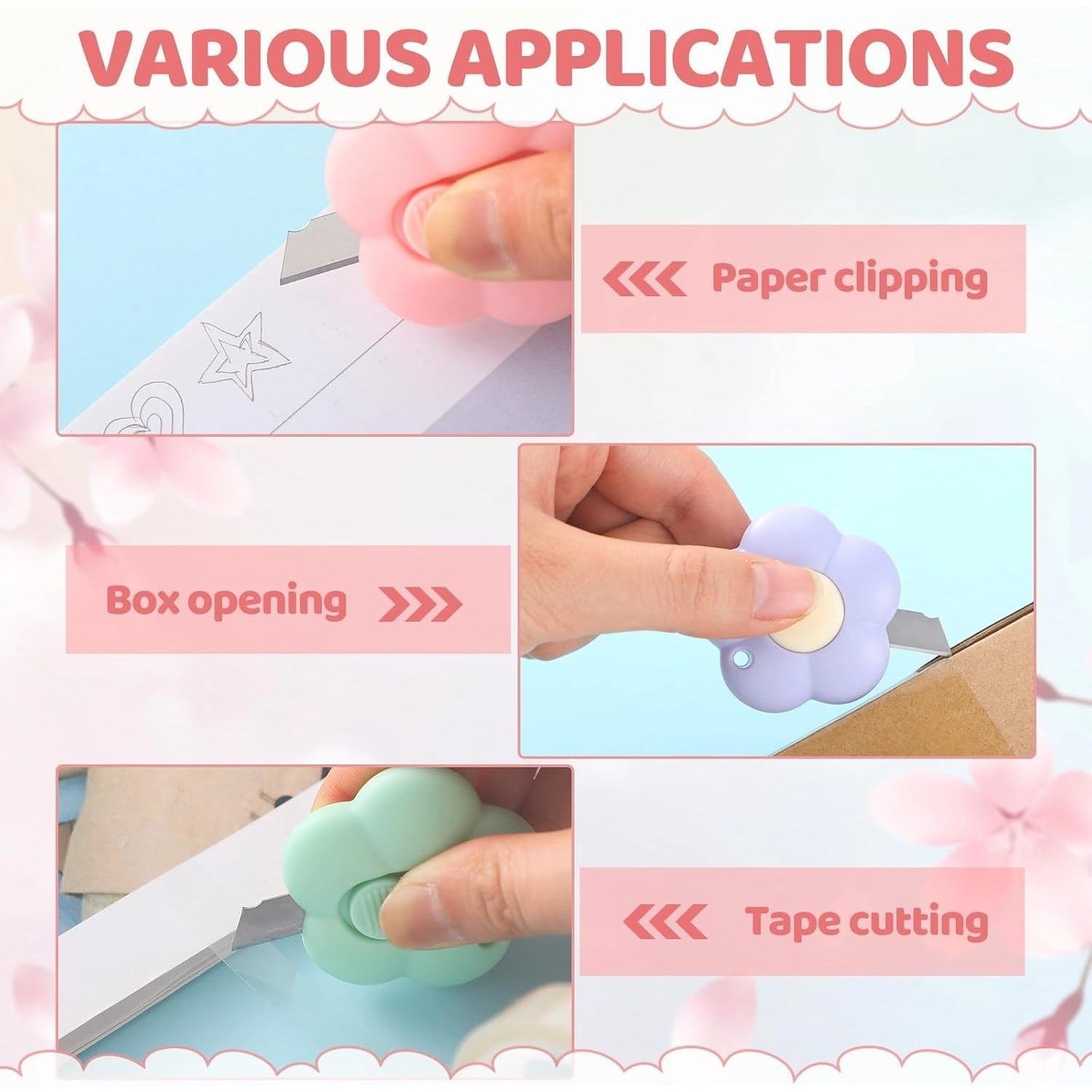 Discover the ultimate convenience with our 30-piece set of mini retractable utility knives. Designed in a charming flower shape, these compact box cutters feature a keychain hole for easy portability, making them perfect for everyday tasks in offices, homes, and craft projects. Made from high-quality materials, they ensure durability and reliable performance for cutting various materials neatly and safely.