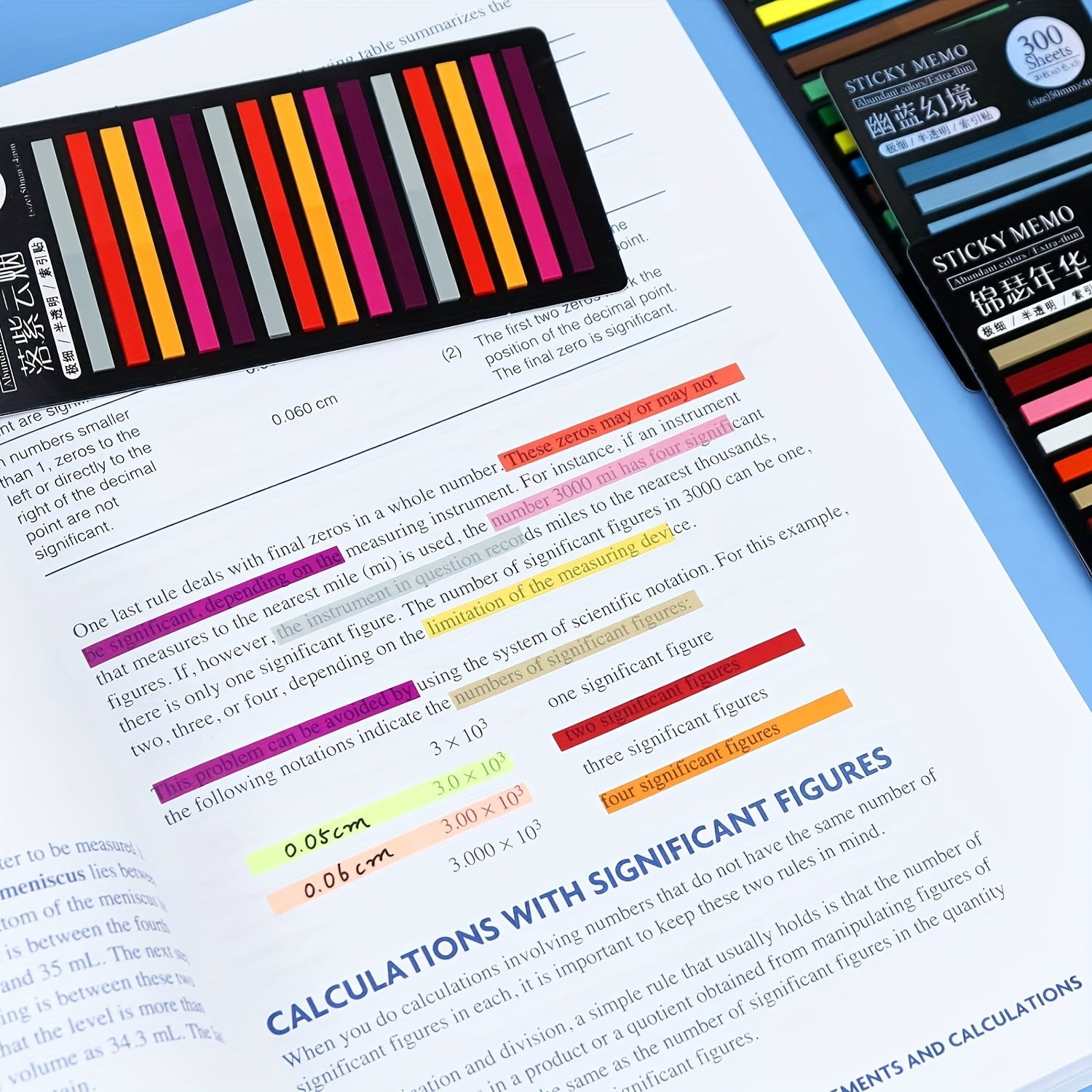 Instantly locate important passages, formulas, definitions, or referenced materials without flipping through entire chapters. The fluorescent colors make marked sections stand out for rapid access during timed tests or quick reviews.