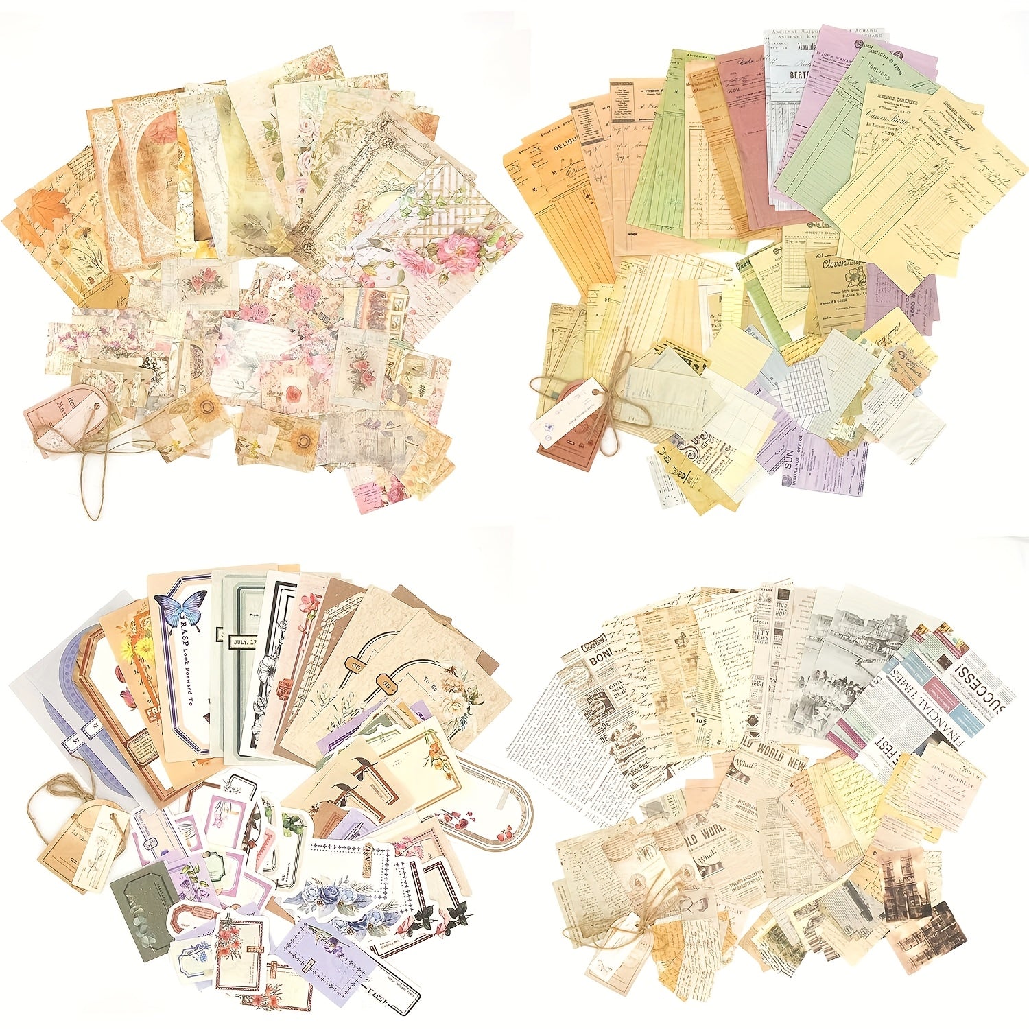 400 sheets/4 Pack Vintage Scrapbook Paper Kit for Journaling Crafts Planner Junk Journal Supplies Collage Card Album DIY