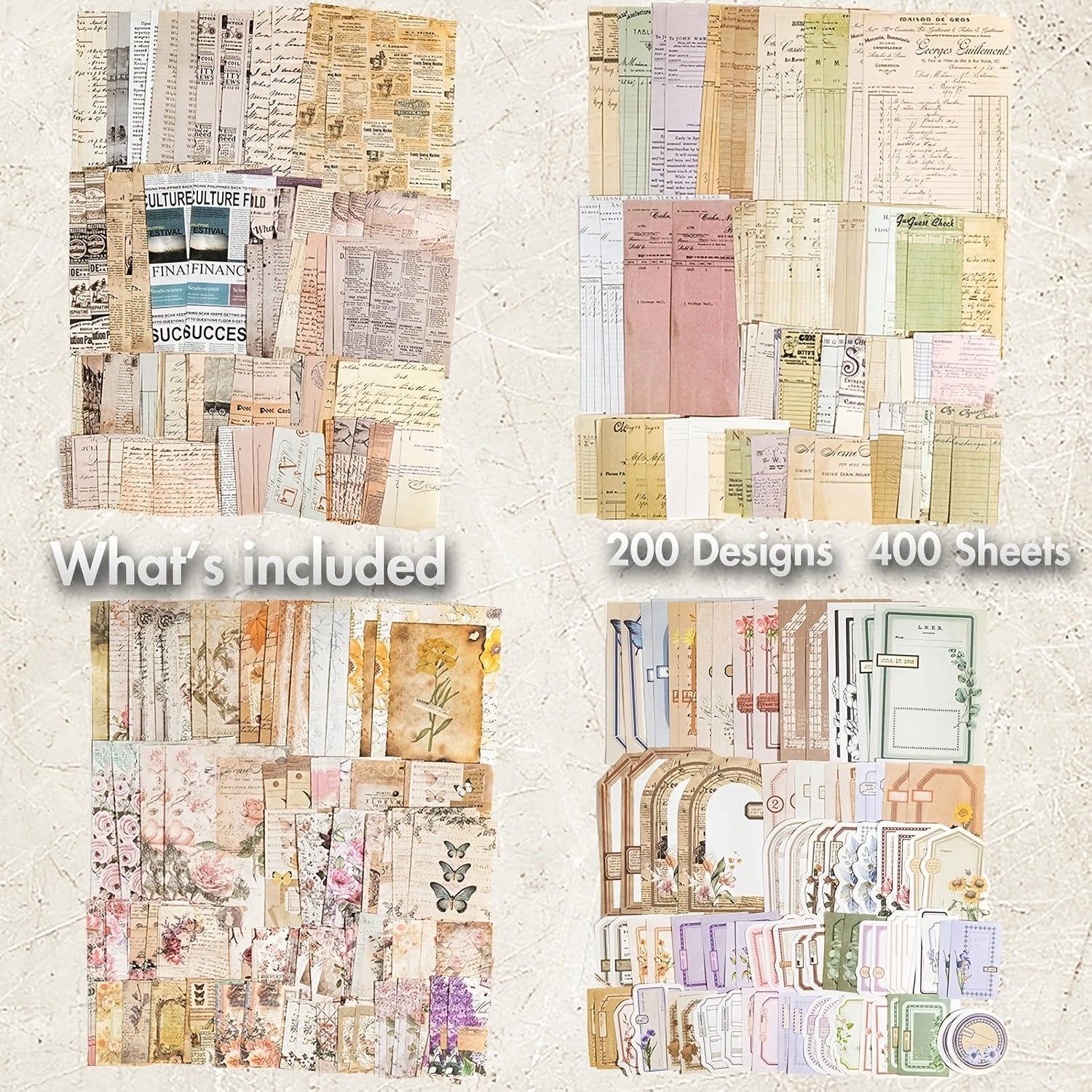 Discover the ultimate vintage crafting experience with our comprehensive 400-piece scrapbook kit. Perfect for journal enthusiasts, mixed media artists, and vintage lovers seeking authentic, ready-to-use ephemera.