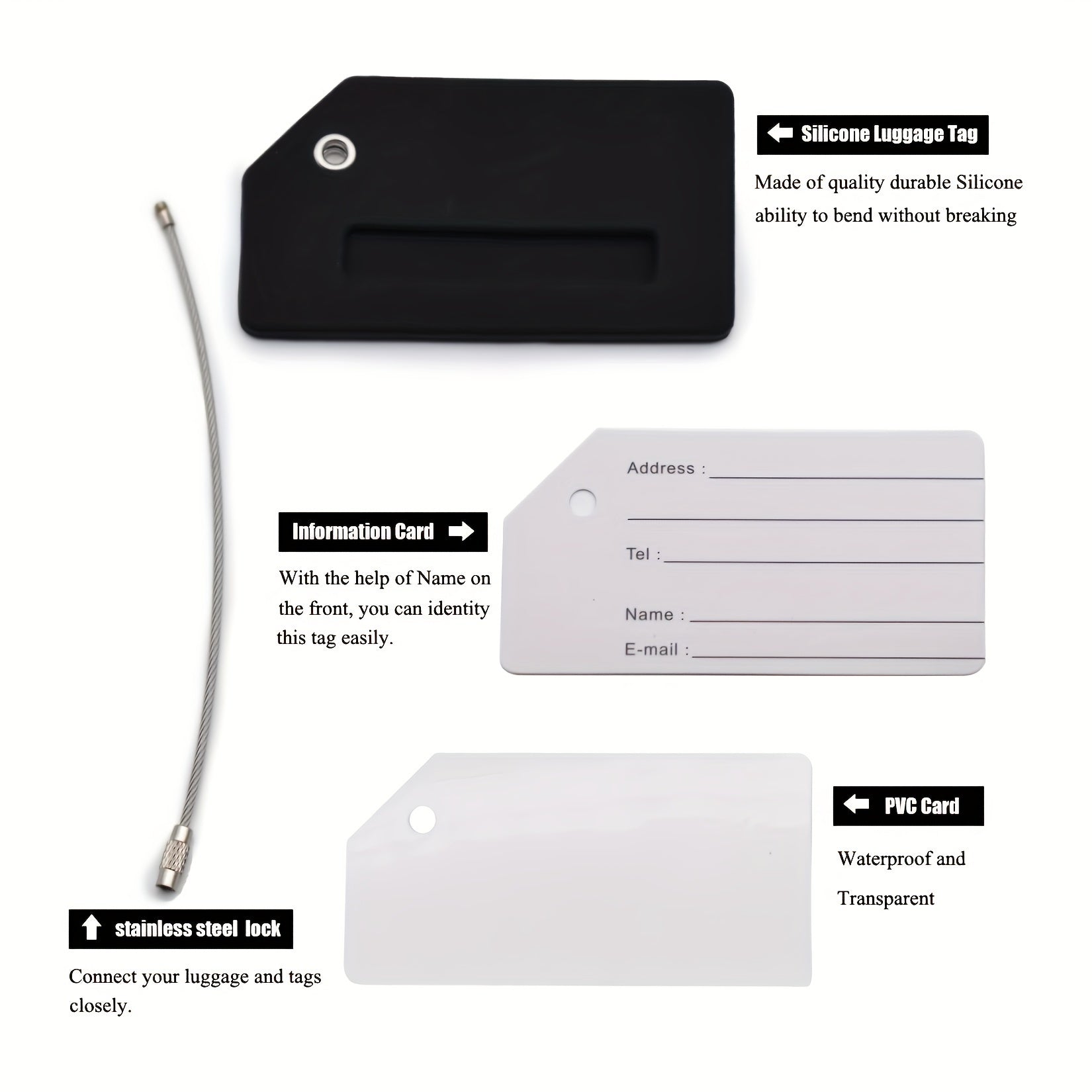 - Flexible & Built to Last: Made from premium, elastic silicone, these tags are completely bendable and will not crack or break. Measuring 3.6 x 2 x 0.25 inches, they are compact, lightweight, and withstand the rigors of travel by plane, train, or cruise ship.