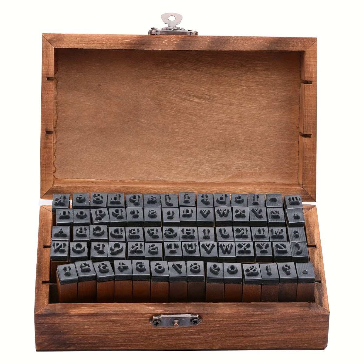 70-Piece Vintage Wooden Rubber Stamp Set - Complete Alphabet & Number Stamps