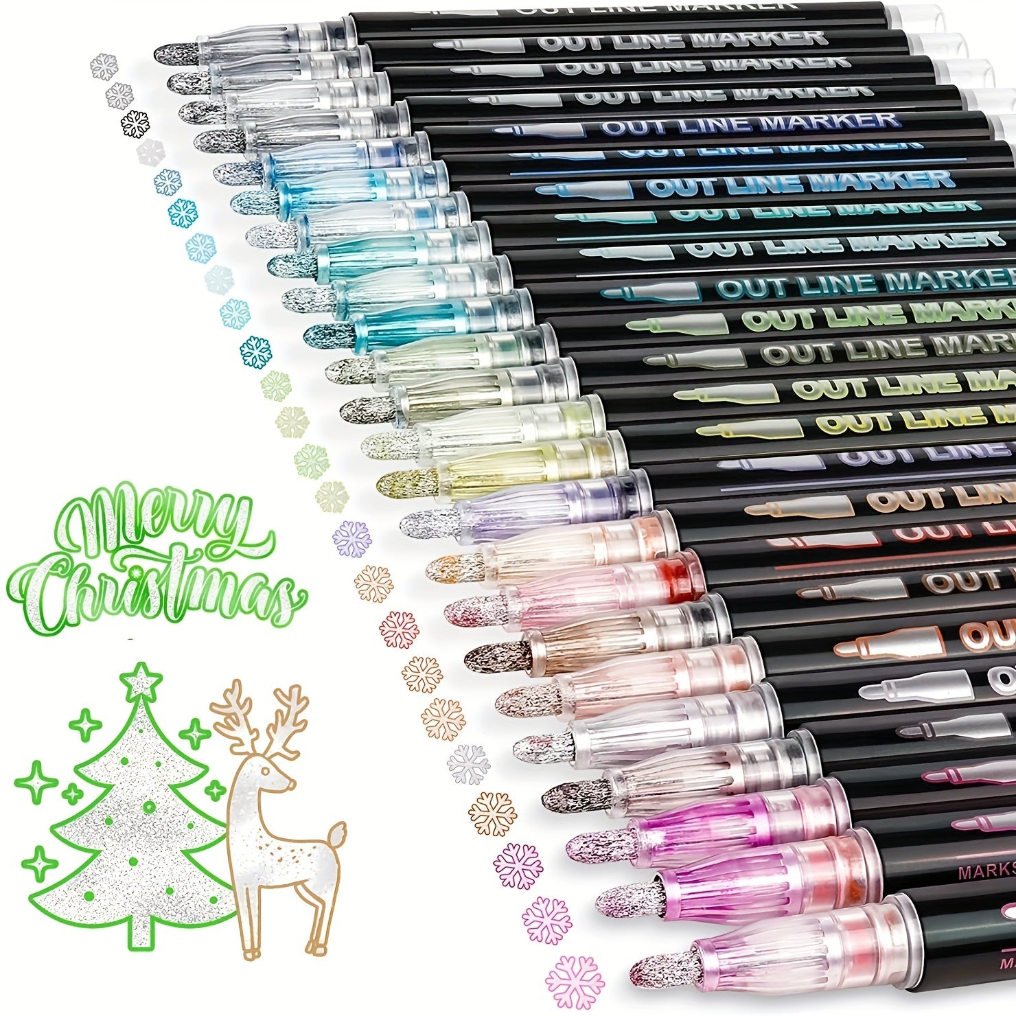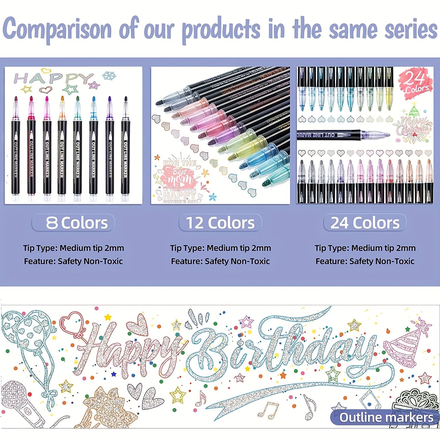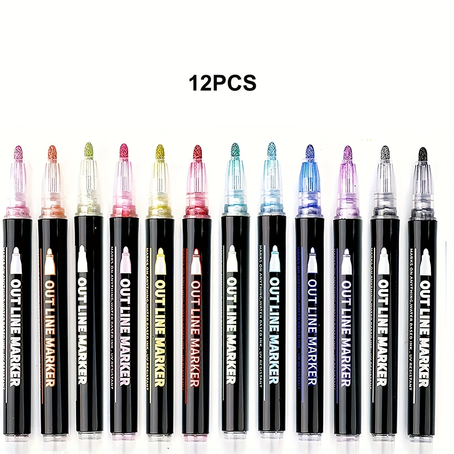 8/12/24 Colors Double Self-Outline Metallic Markers - Dual Tip Craft Pens for Scrapbooking, Easter Eggs & Card Making