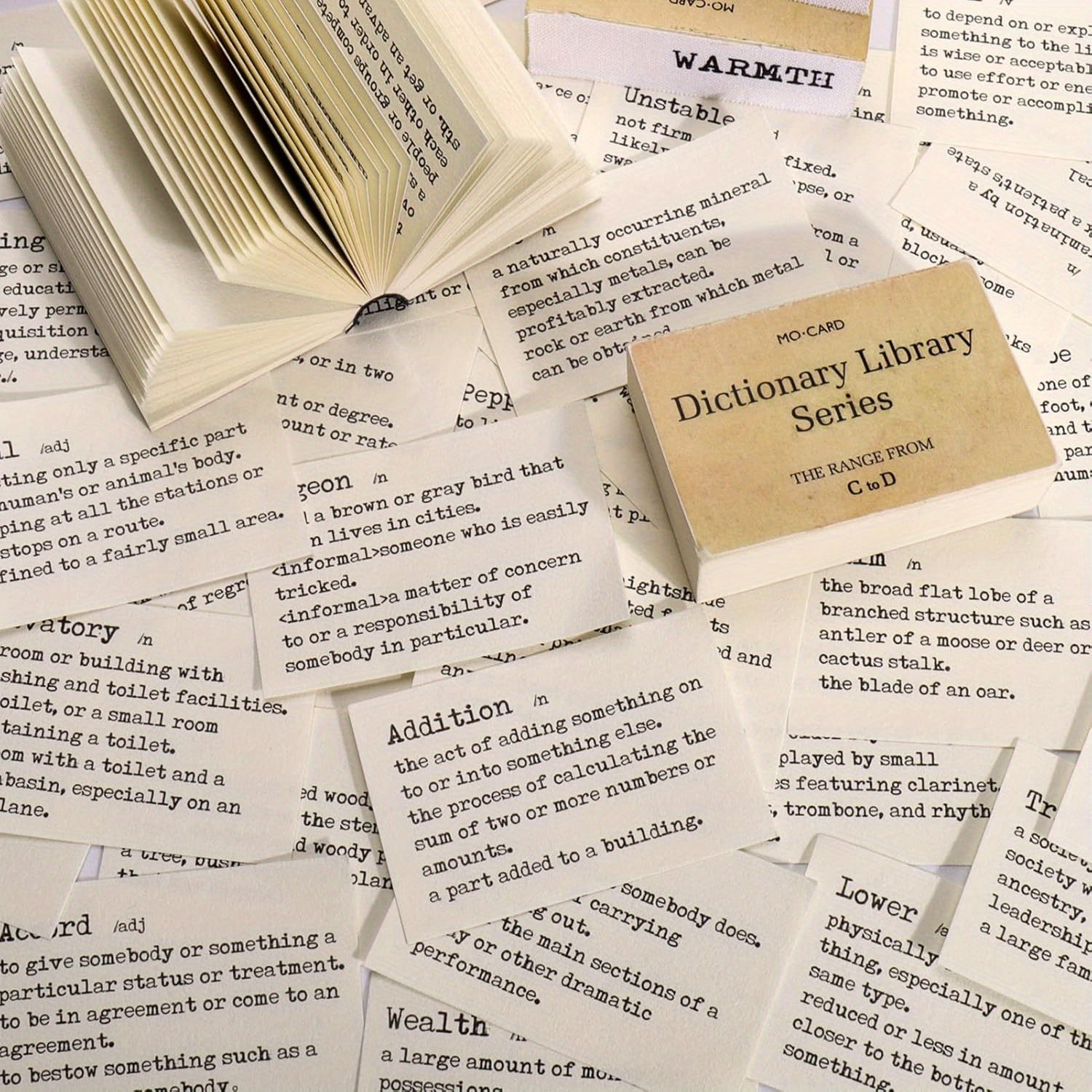Discover an extensive collection of 800 completely unique dictionary-style scrapbooking papers, each featuring different words with their meanings, pronunciation, and origin. From A to Z, no two sheets are duplicated, offering endless creative possibilities and ensuring your projects remain one-of-a-kind.