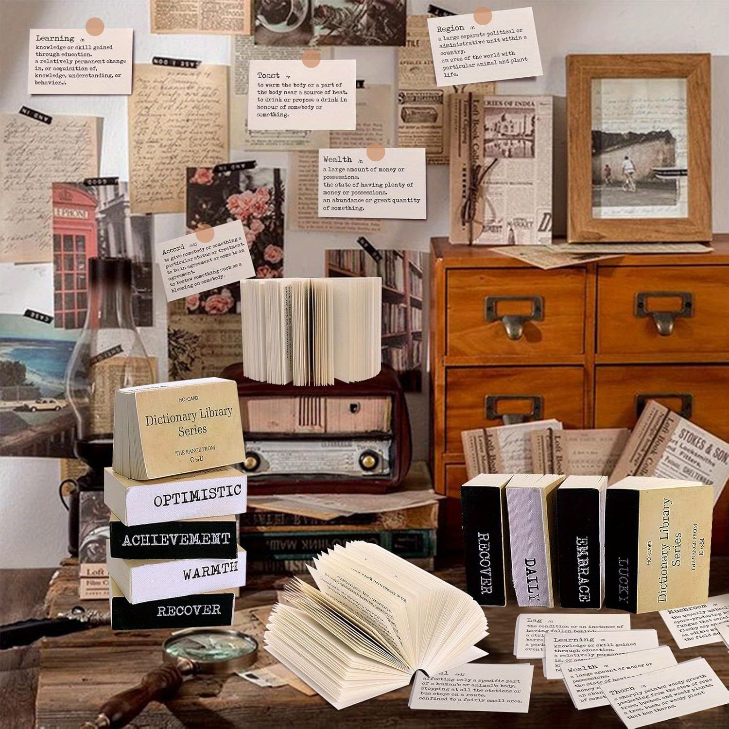 800pcs Vintage Scrapbook Paper Pack, Mini Dictionary Scrapbooking Sheets Set for Journal Supplies DIY Crafting Supplies Kit