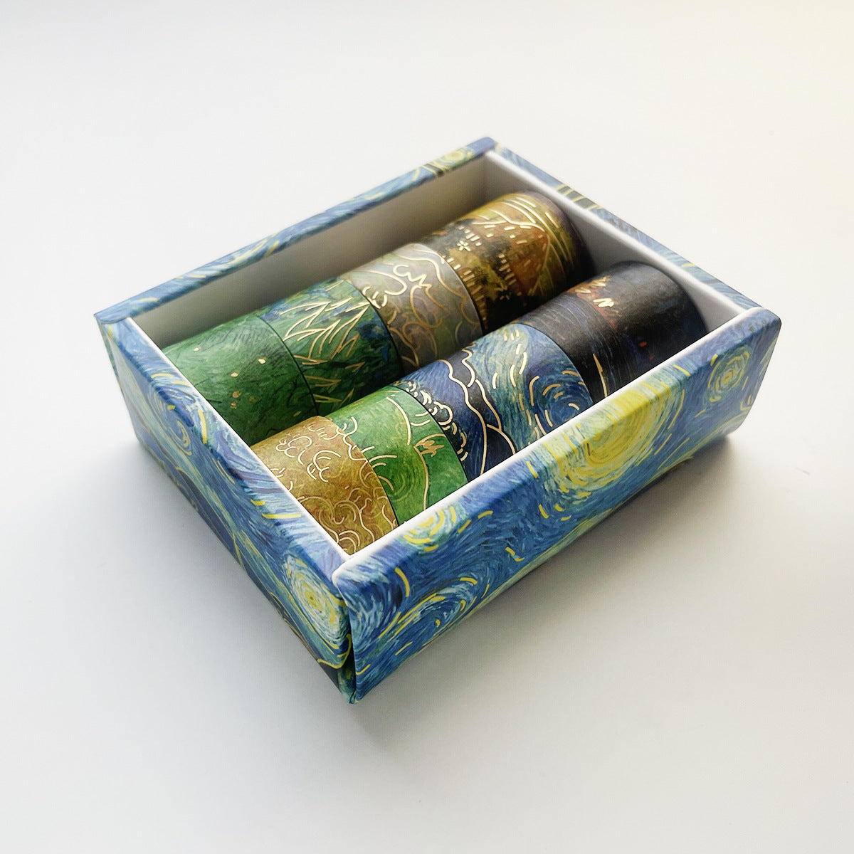 Elevate your creative projects with our exclusive Van Gogh washi tape collection featuring 8 stunning rolls inspired by the master's most famous works. This comprehensive set includes multiple widths and designs, perfect for bullet journaling, scrapbooking, and gift decoration with artistic flair.