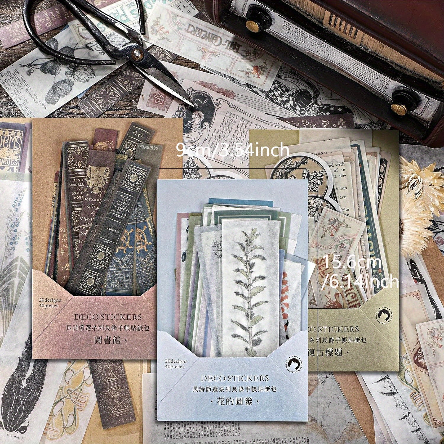 120 Pieces Vintage Scrapbook Washi Stickers - Antique Floral, Title & Book Theme Decals for Journals, Planners, Photo Albums & DIY Projects (8-15cm/3.15-5.9in)